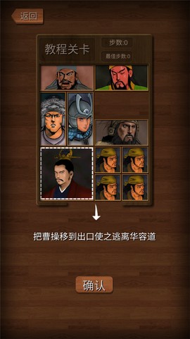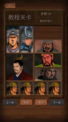 3、棋盘中仅有两个空格,这就要求你通过精巧的棋子移动,运用最少的步骤将曹操成功引导出华容道,让你在智力的较量中体验乐趣;