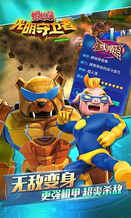 4、超人变身系统:每一个猪猪侠都拥有动画中的特色变身,所有的变身都有相应猪猪侠的特征,功能与外观各异的弹幕,强化每个超人的必杀技,帮助猪猪侠赢得战斗。